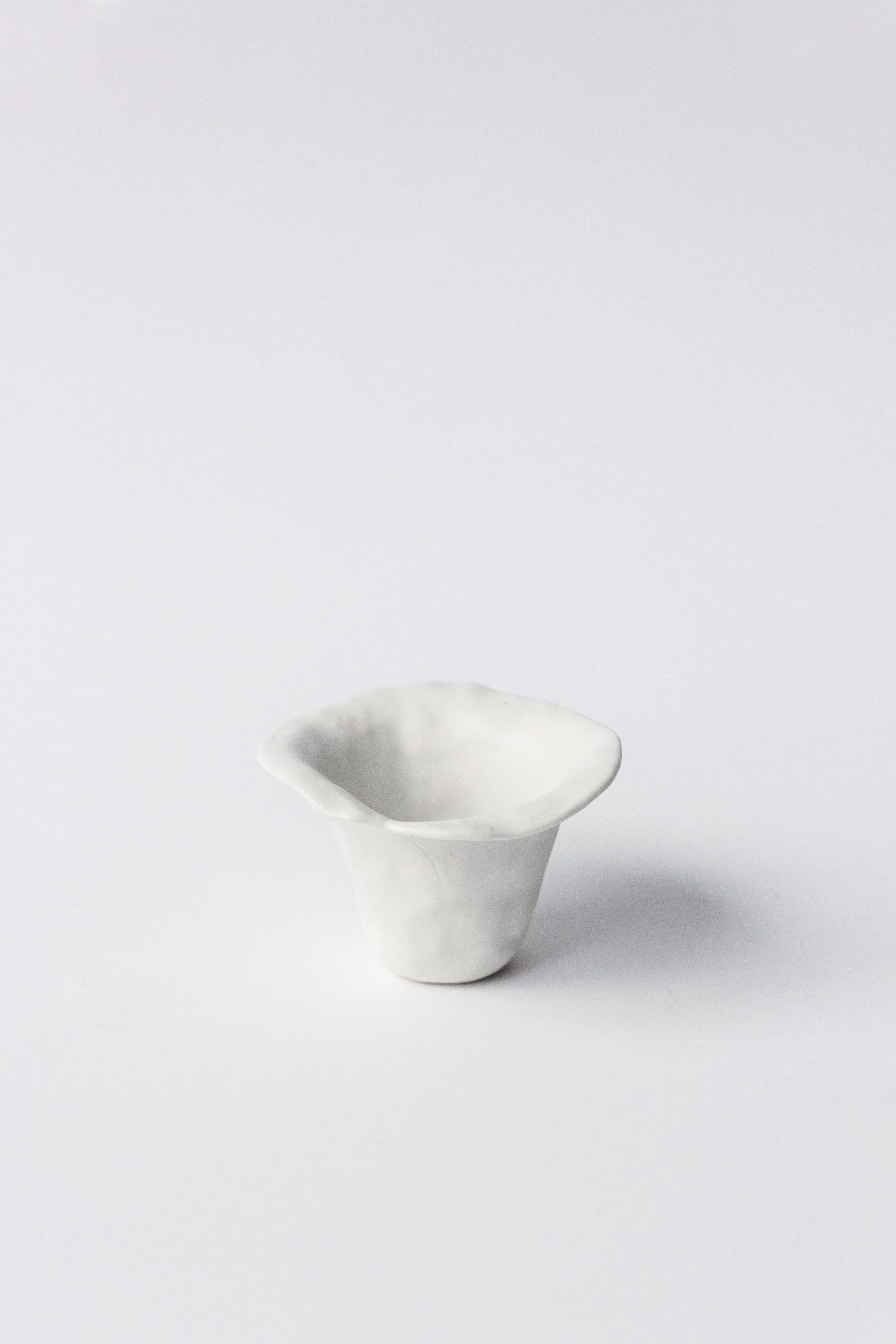 a handbuilt one-of-one shape of a lily finished in soft white.