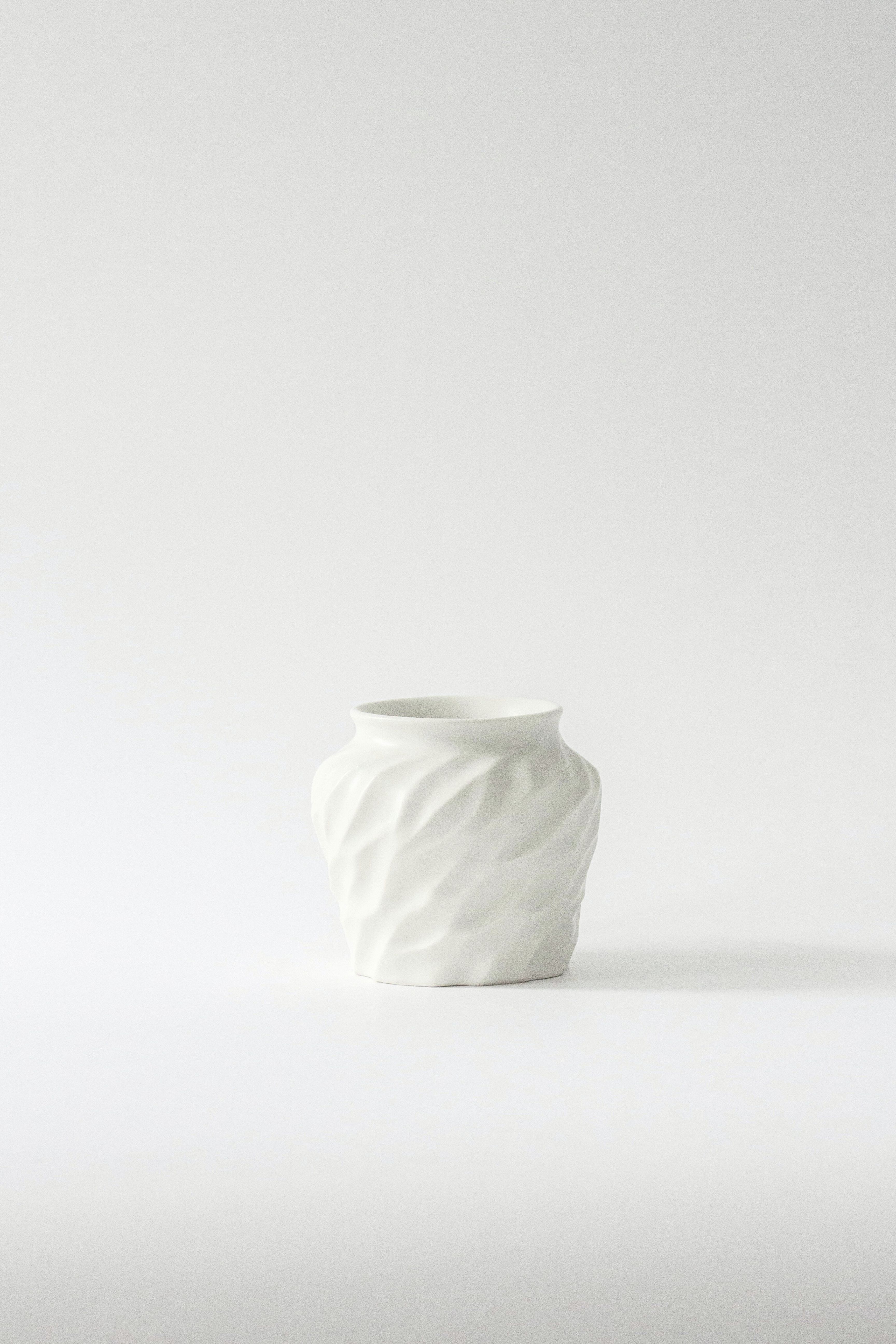 a small moon jar with a carved rippled effect. one-of-one piece.